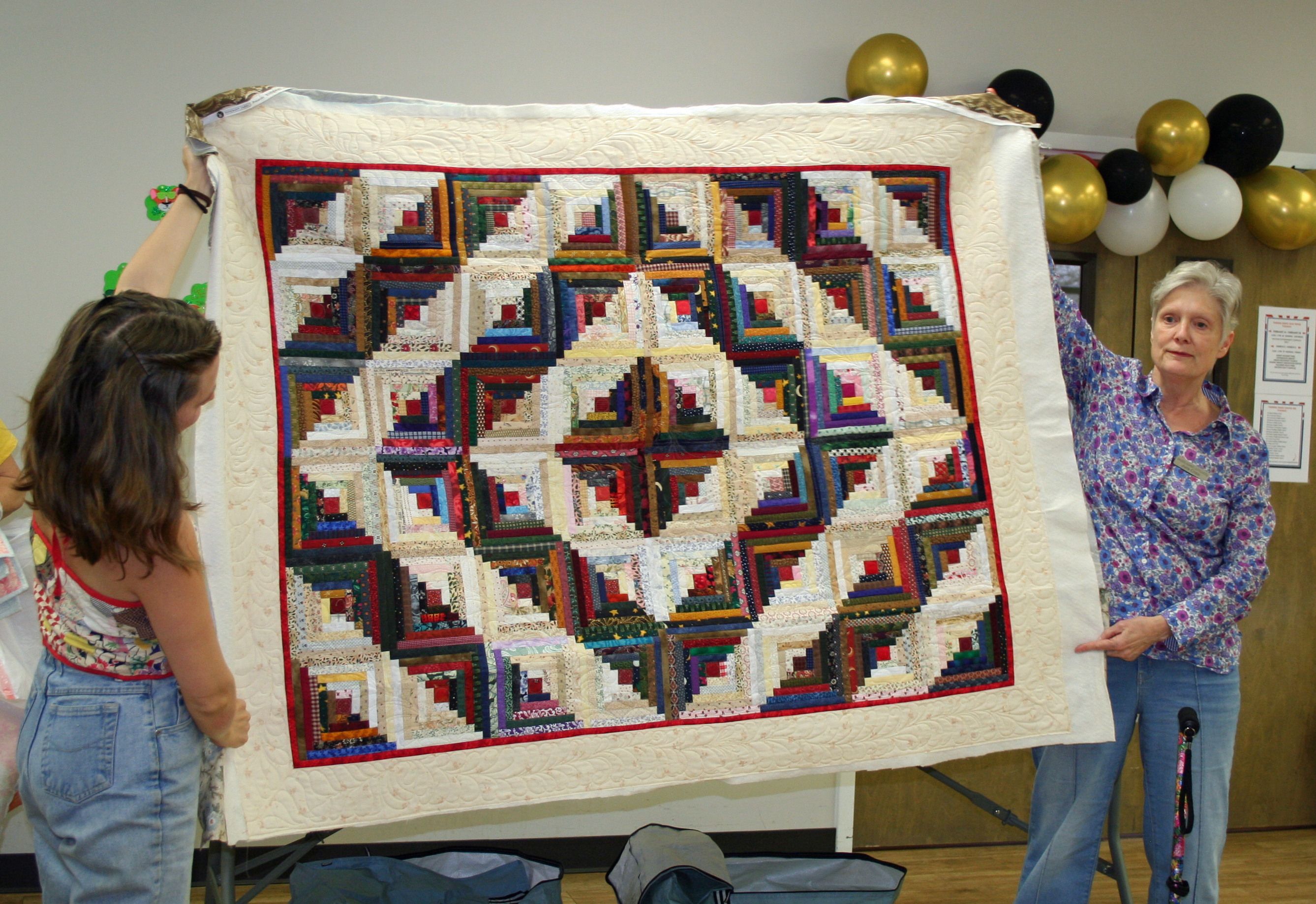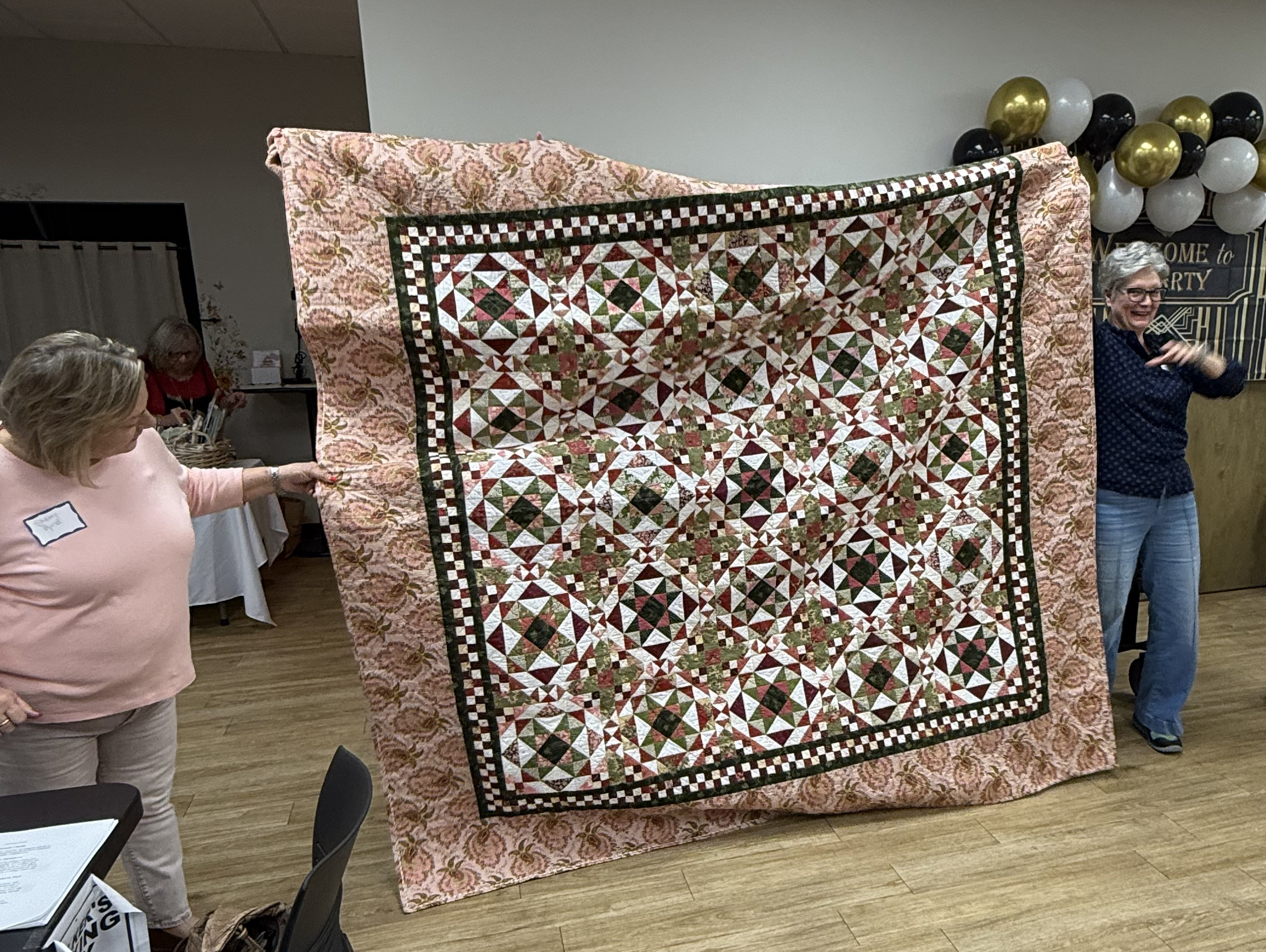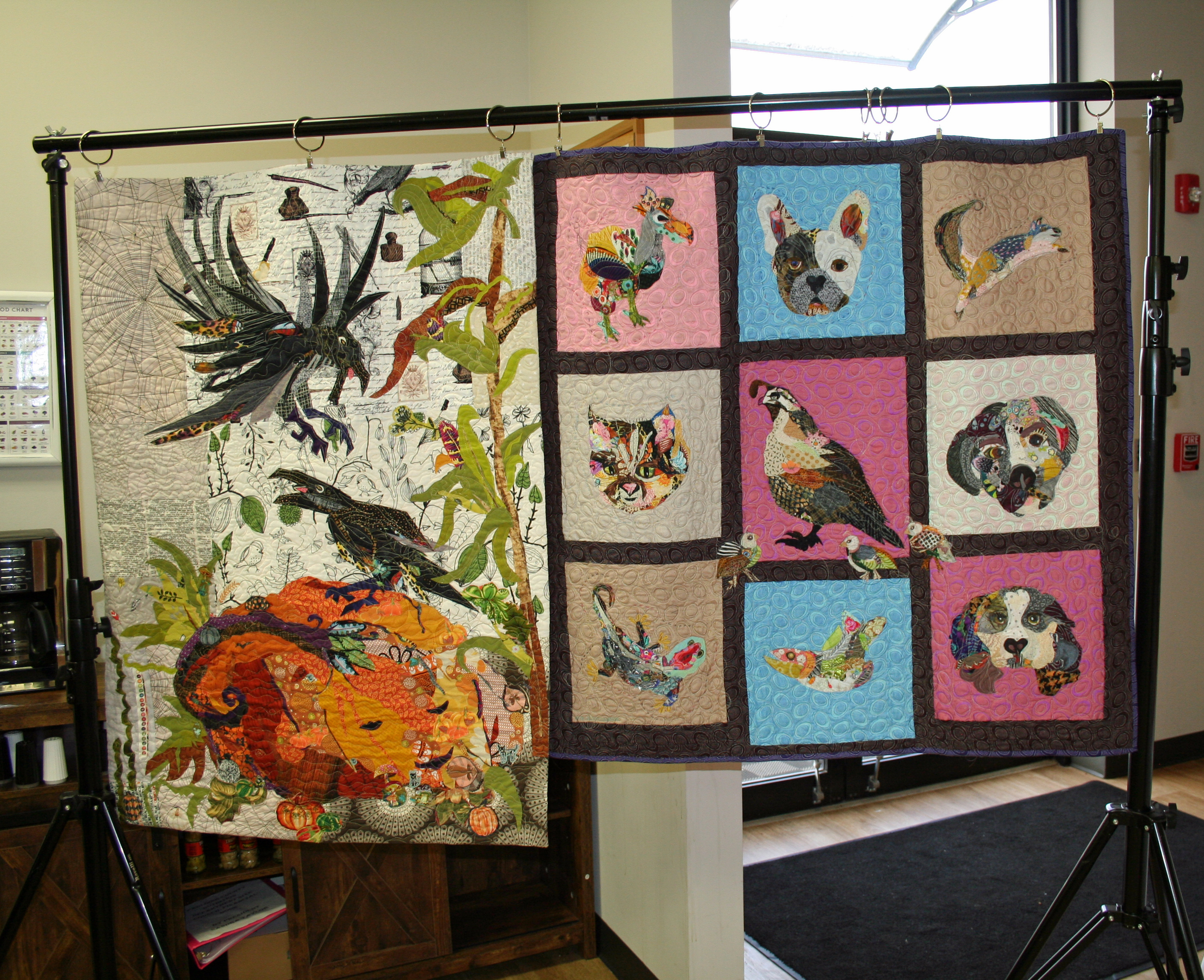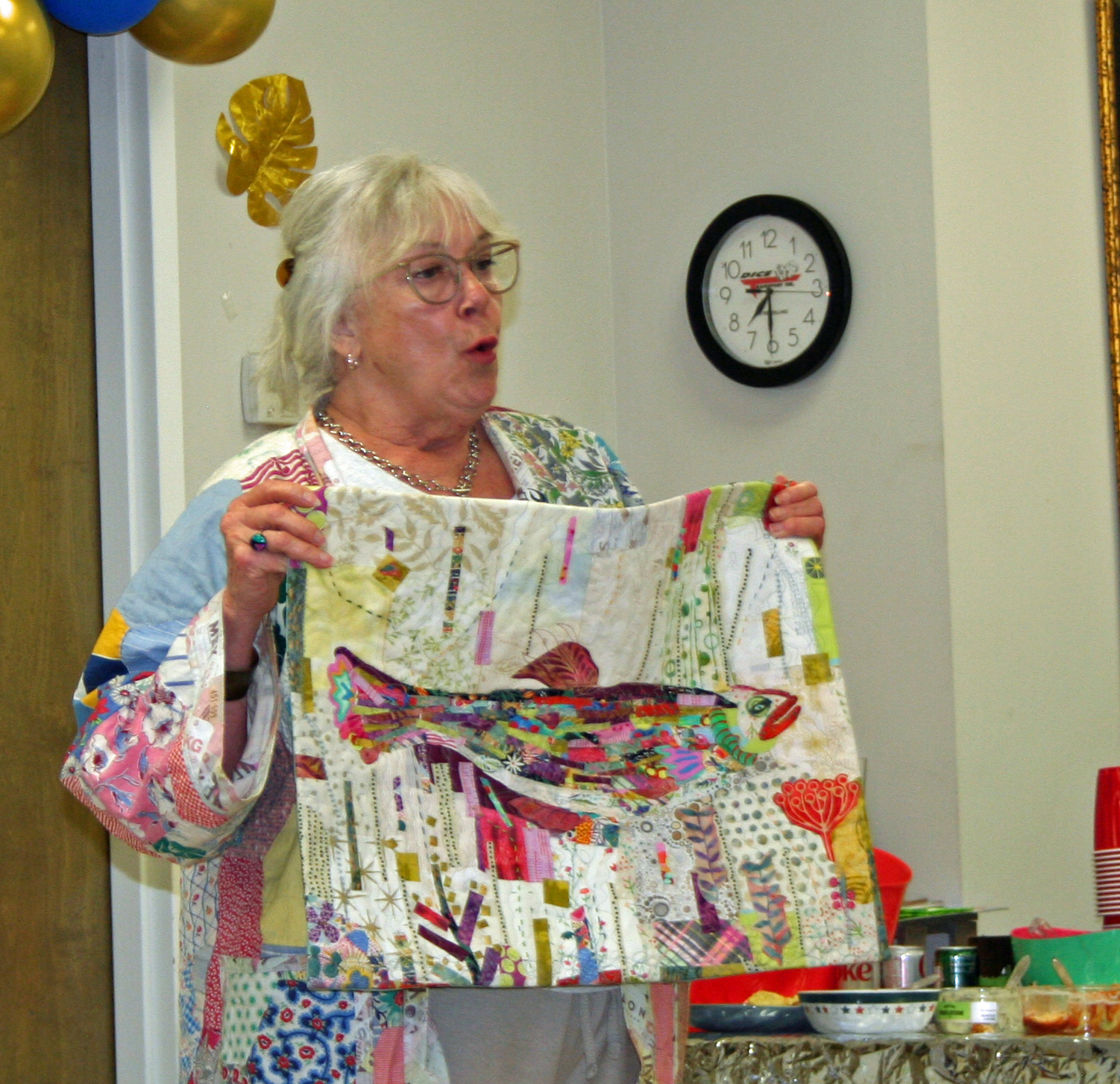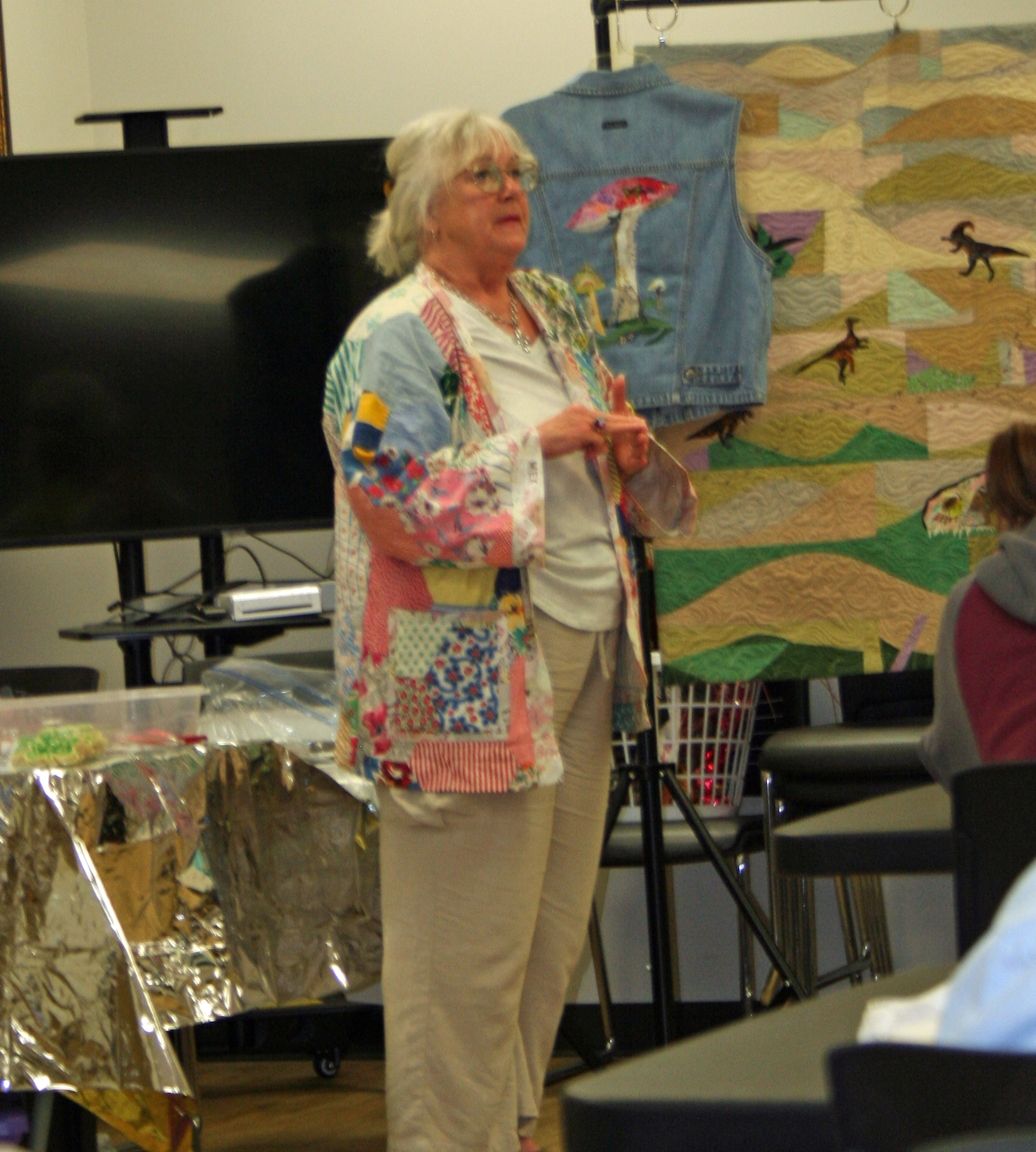 March 2026 Show & Tell and Speaker Nancy Hutchinson with some of her quilts. (Some of February Show & Tell)