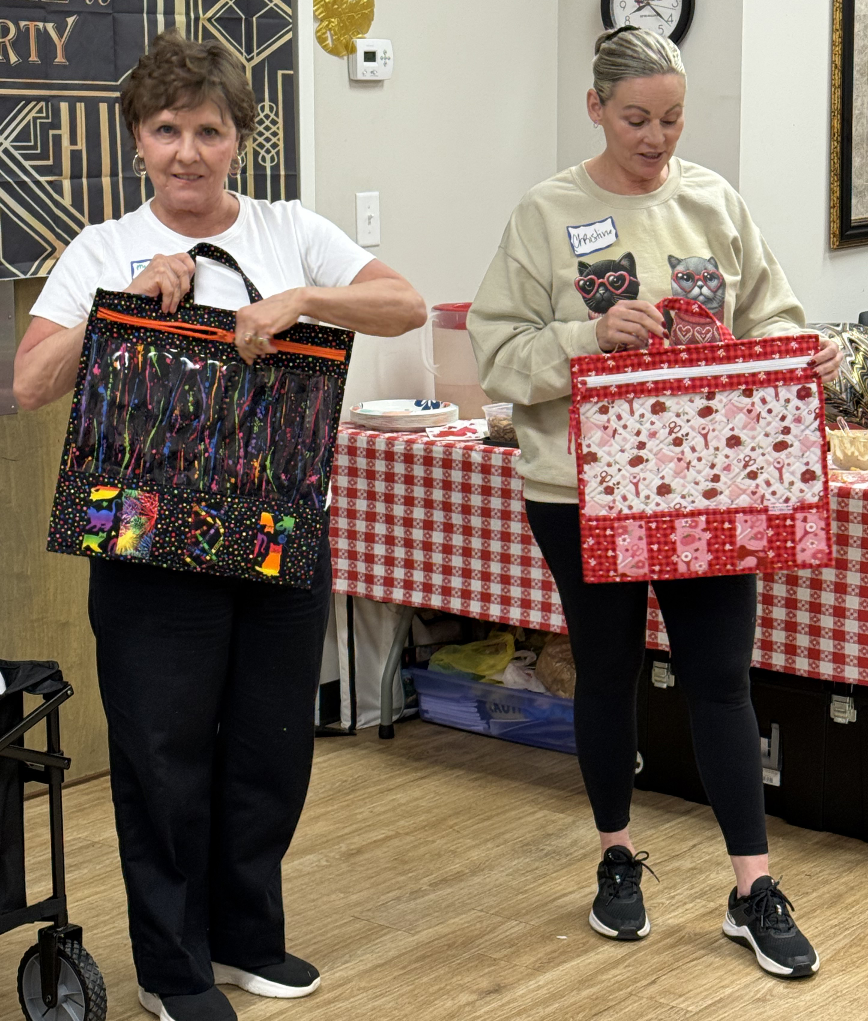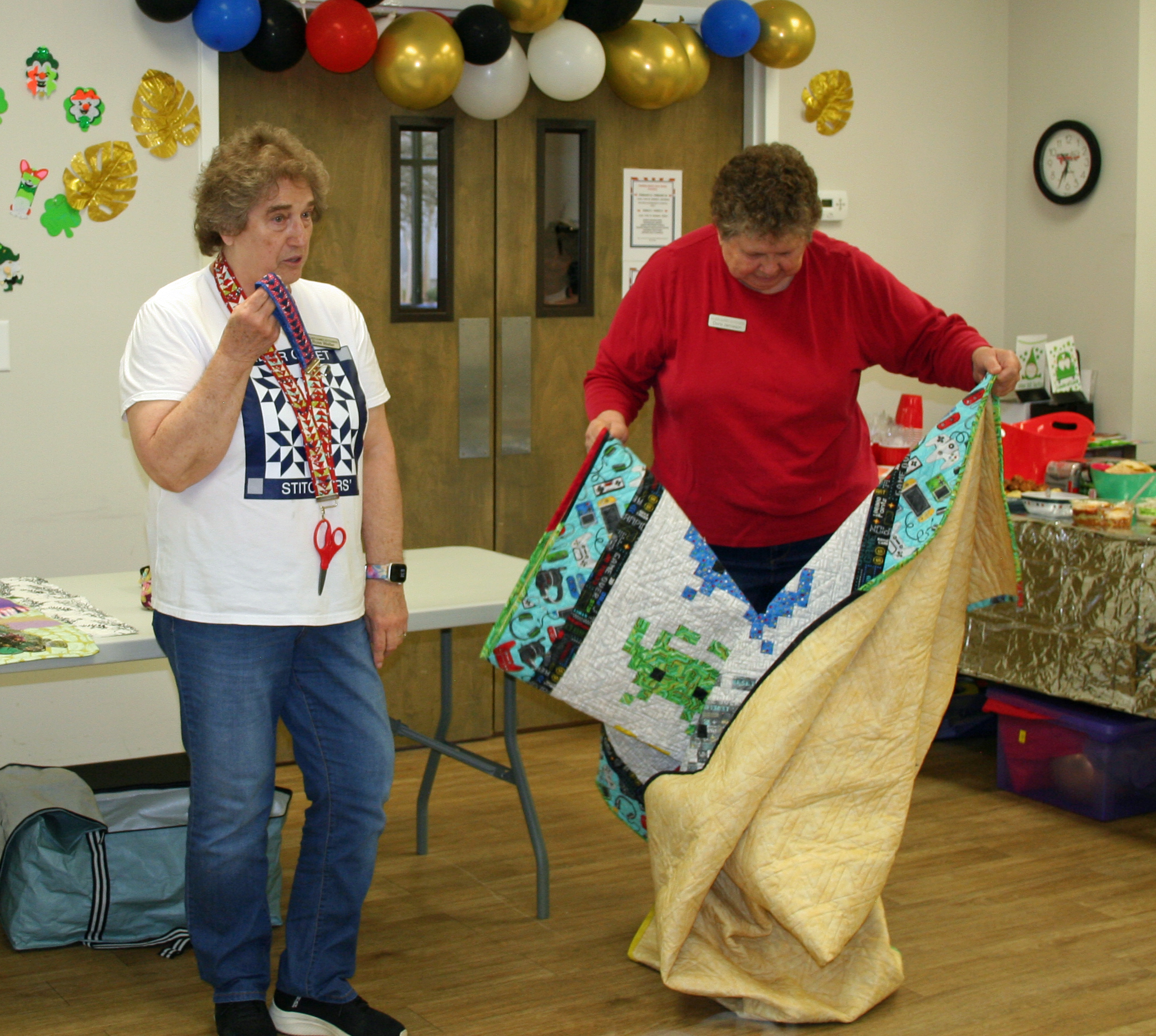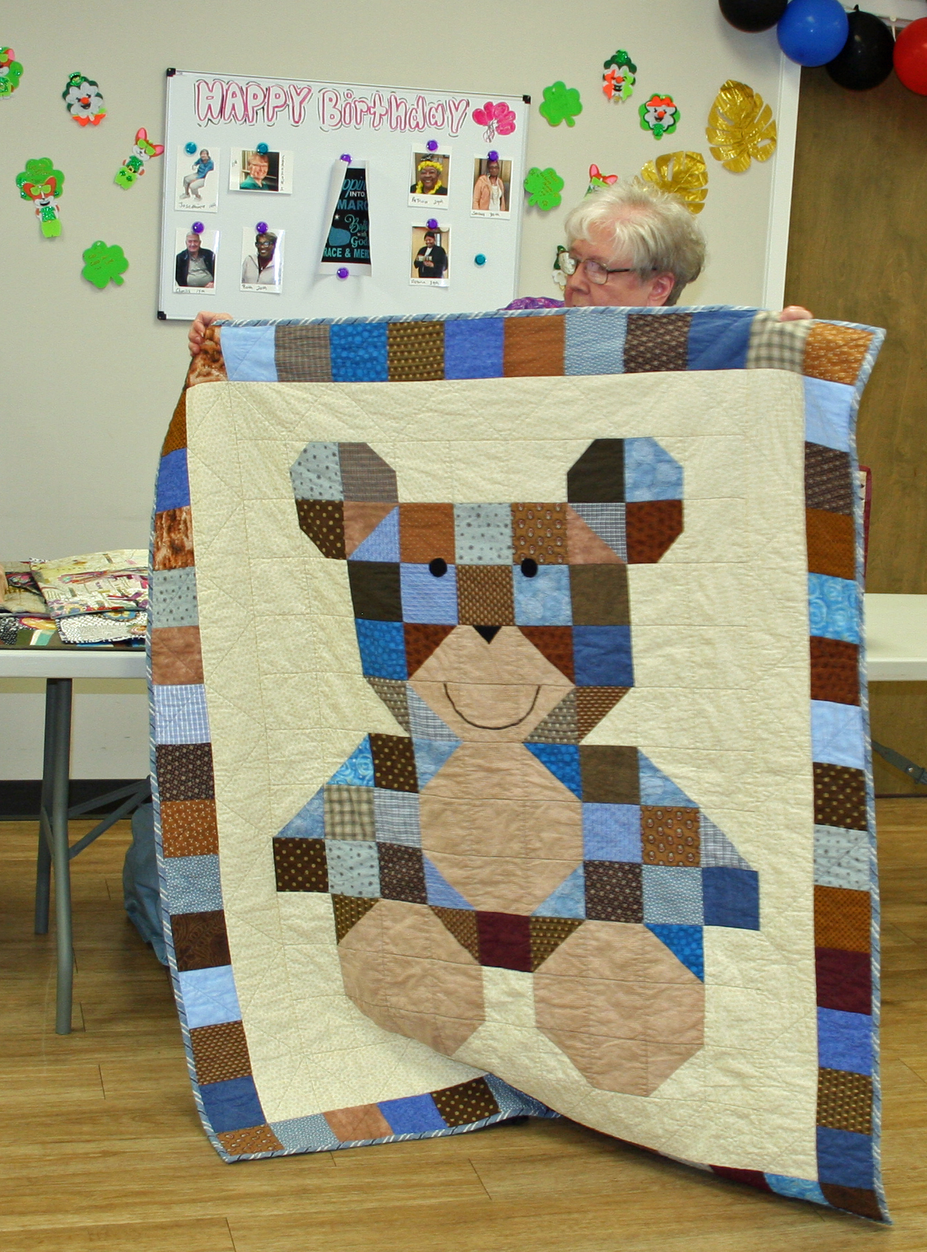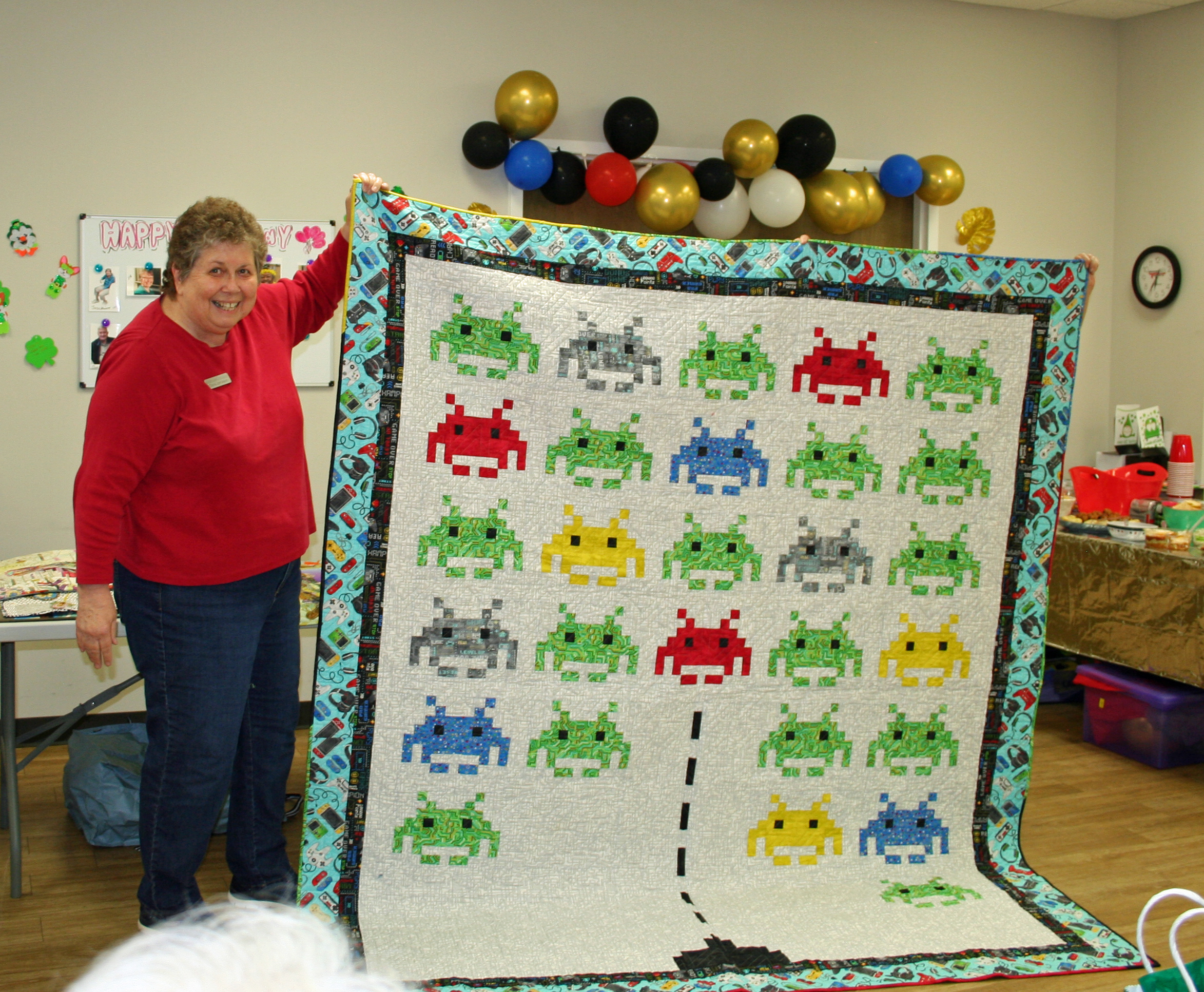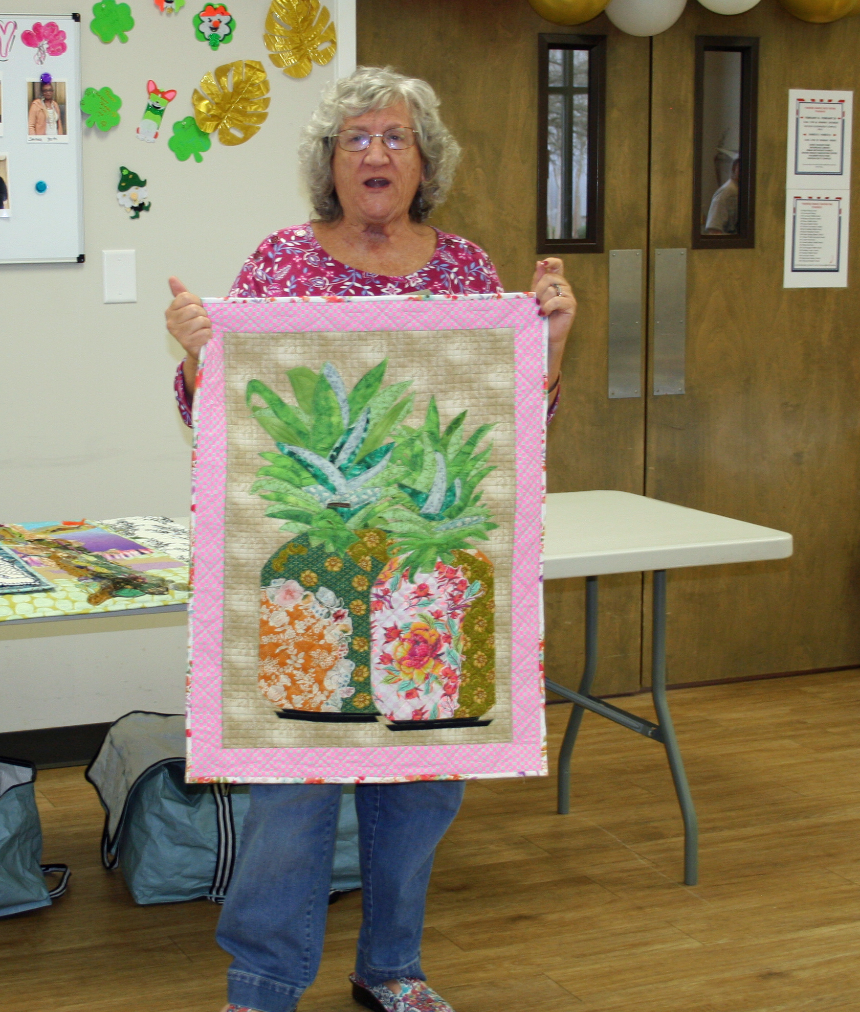 March 2026 Show & Tell and Speaker Nancy Hutchinson with some of her quilts. (Some of February Show & Tell)